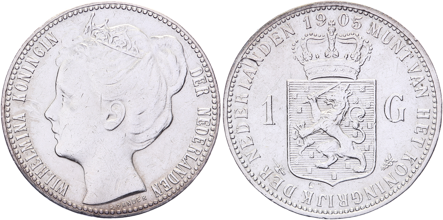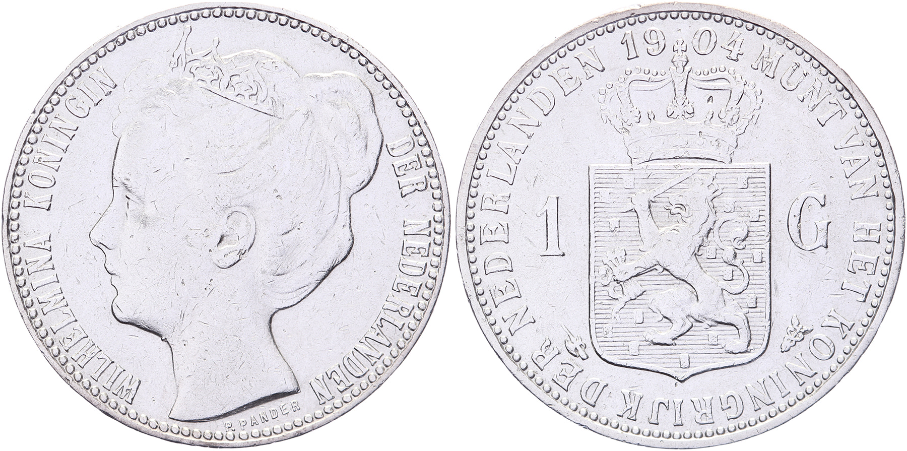 Lot (2) 1 Gulden 1904 en 1905 mmt. hellebaard Lsch. 689, 690; Sch. 806, 807 Ruim fraai / Zfr.