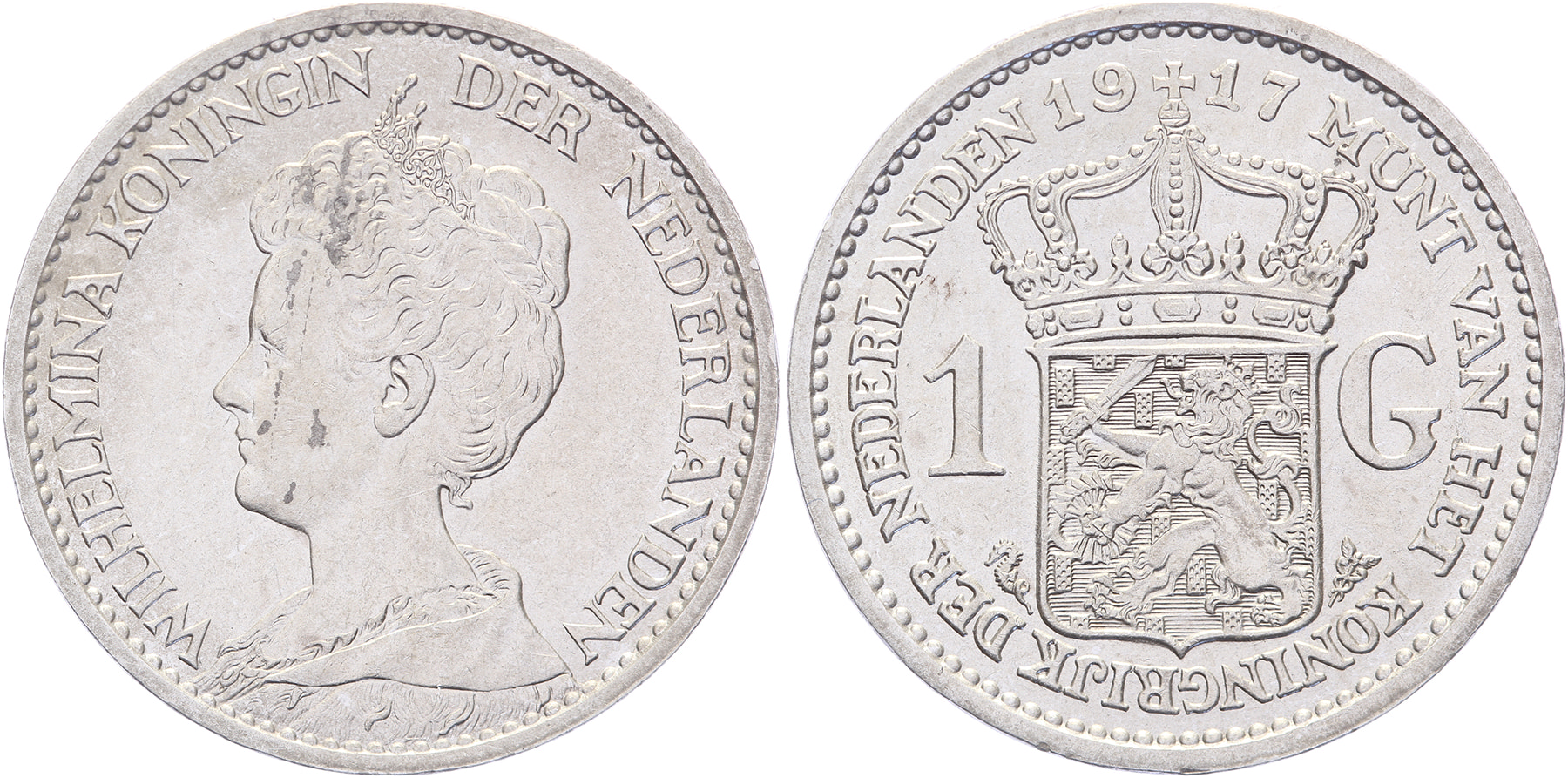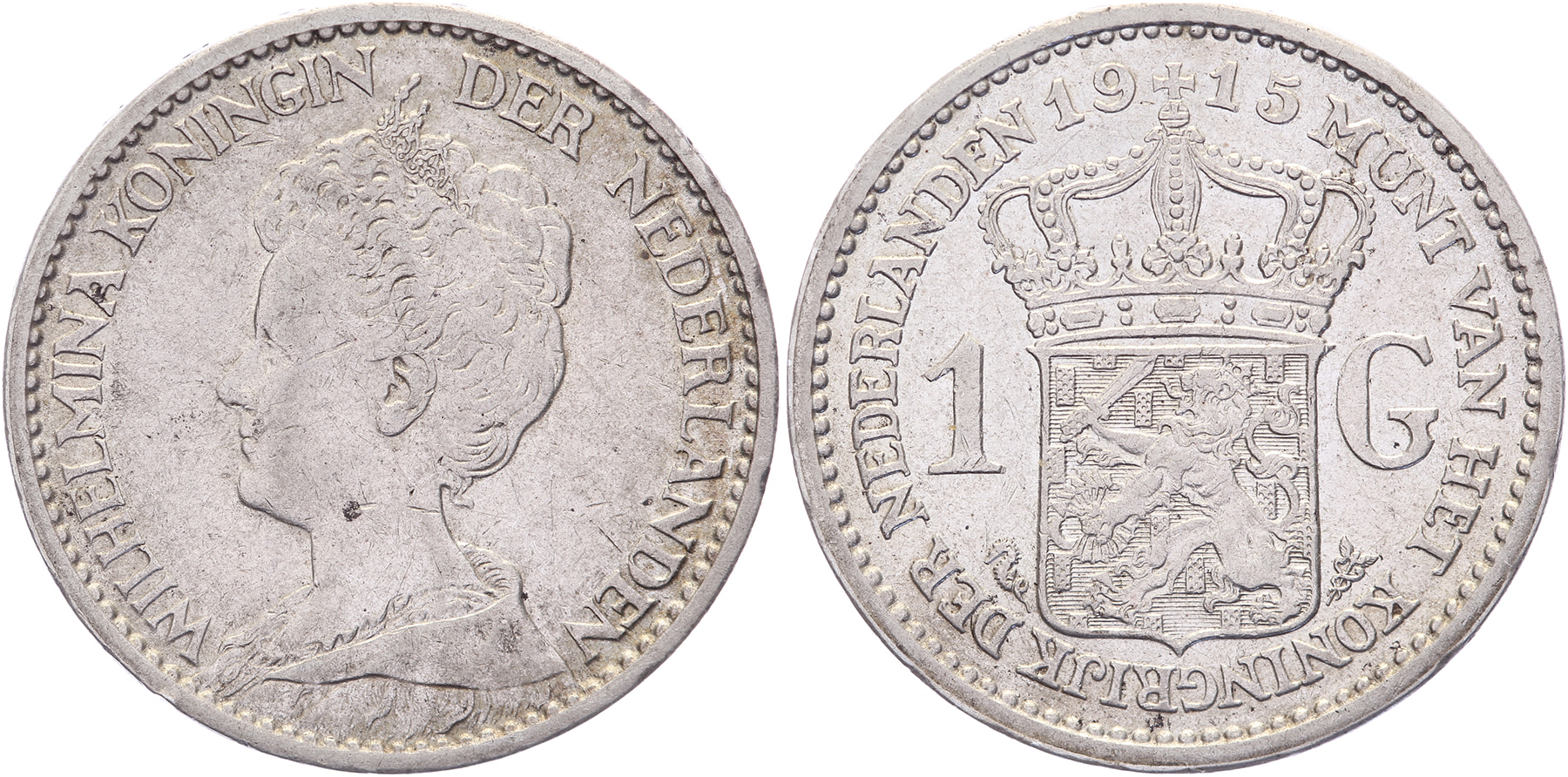 Lot (2) 1 Gulden 1915 en 1917 LSch. 700, 702; Sch. 817, 819 Prachtig ⁂