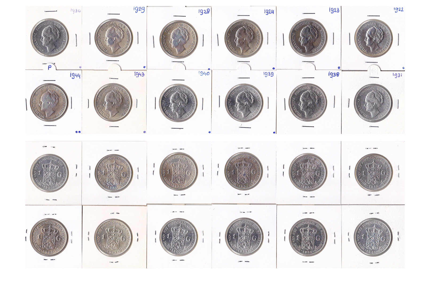 Lot (12) 1 Gulden 1922 t/m 1944 LSch. 703-714; Sch. 820-829, 1055, 1073 Zeer fraai