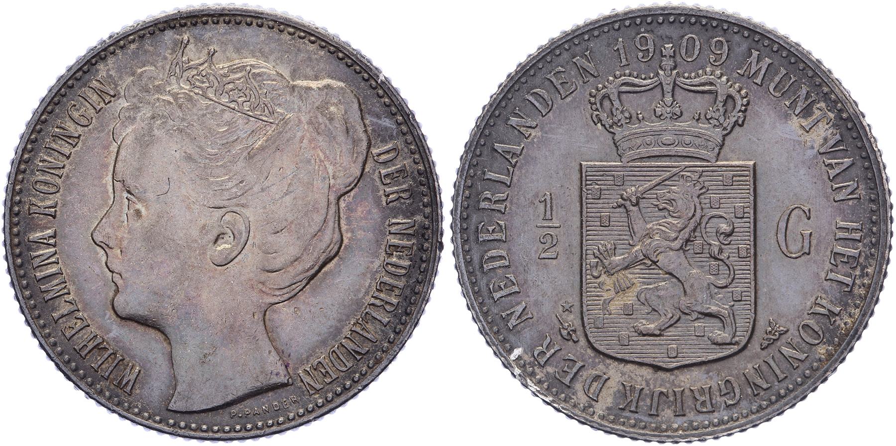 ½ Gulden 1909 mmt. hellebaard LSch. 726; Sch. 836. Prachtig donker patina FDC ⁂
