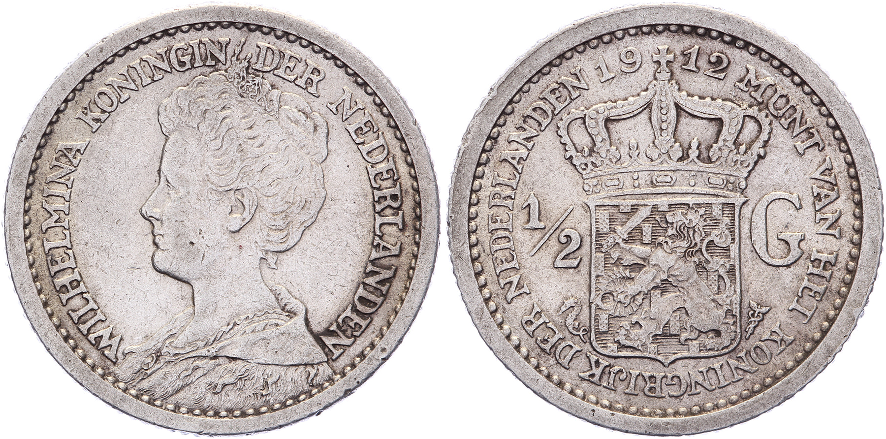 ½ Gulden 1912 mmt. zeepaardje LSch. 728; Sch. 838 Prachtig / FDC ⁂