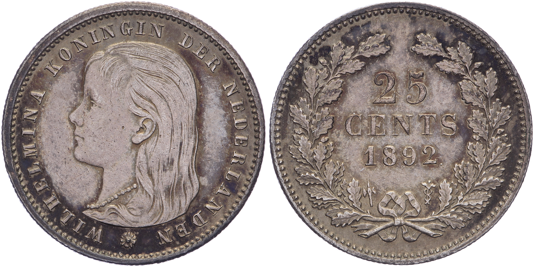 25 Cents 1892 mmt. hellebaard LSch. 737; Sch. 847. Donker patina Ruim zfr. / Prachtig ⁂