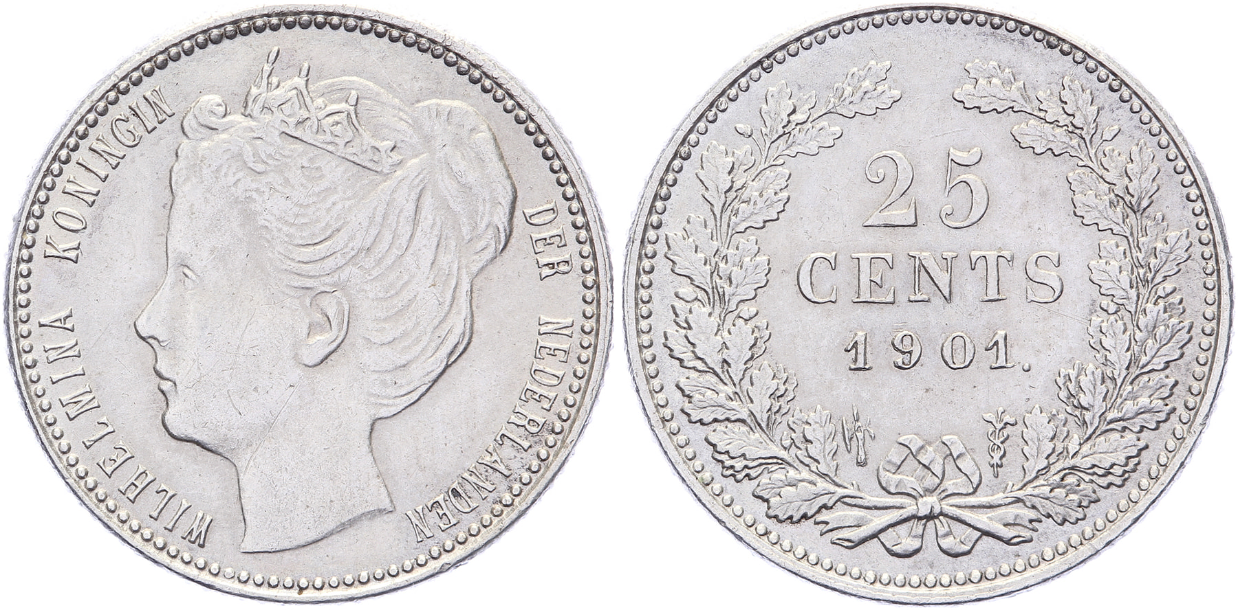 25 Cents 1901 mmt. hellebaard LSch. 744; Sch. 854. Brede hals Ruim pr. / Bijna FDC ⁂