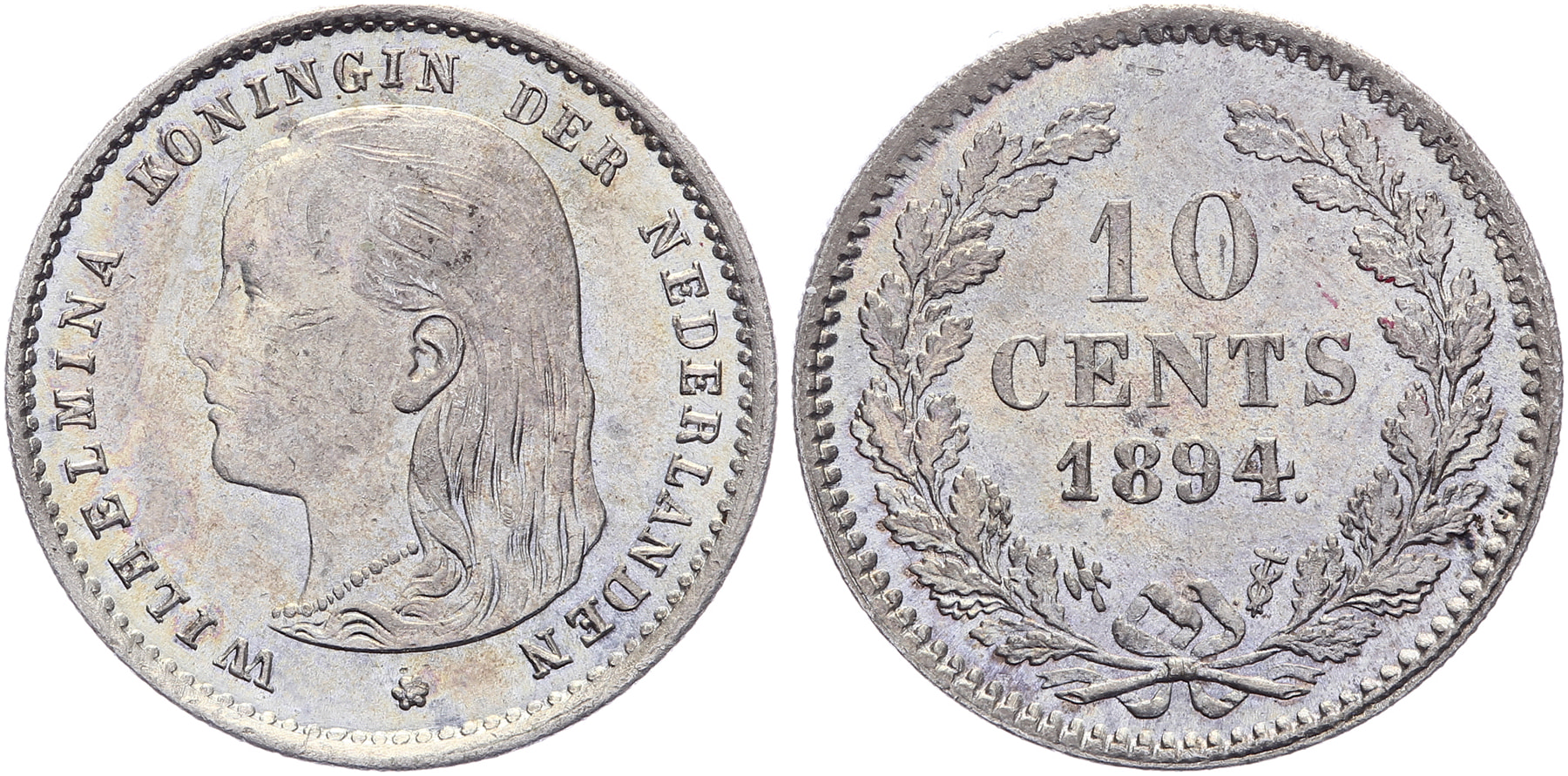 10 Cents 1894 mmt. hellebaard LSch. 779; Sch. 879. Mooi patina FDC ⁂