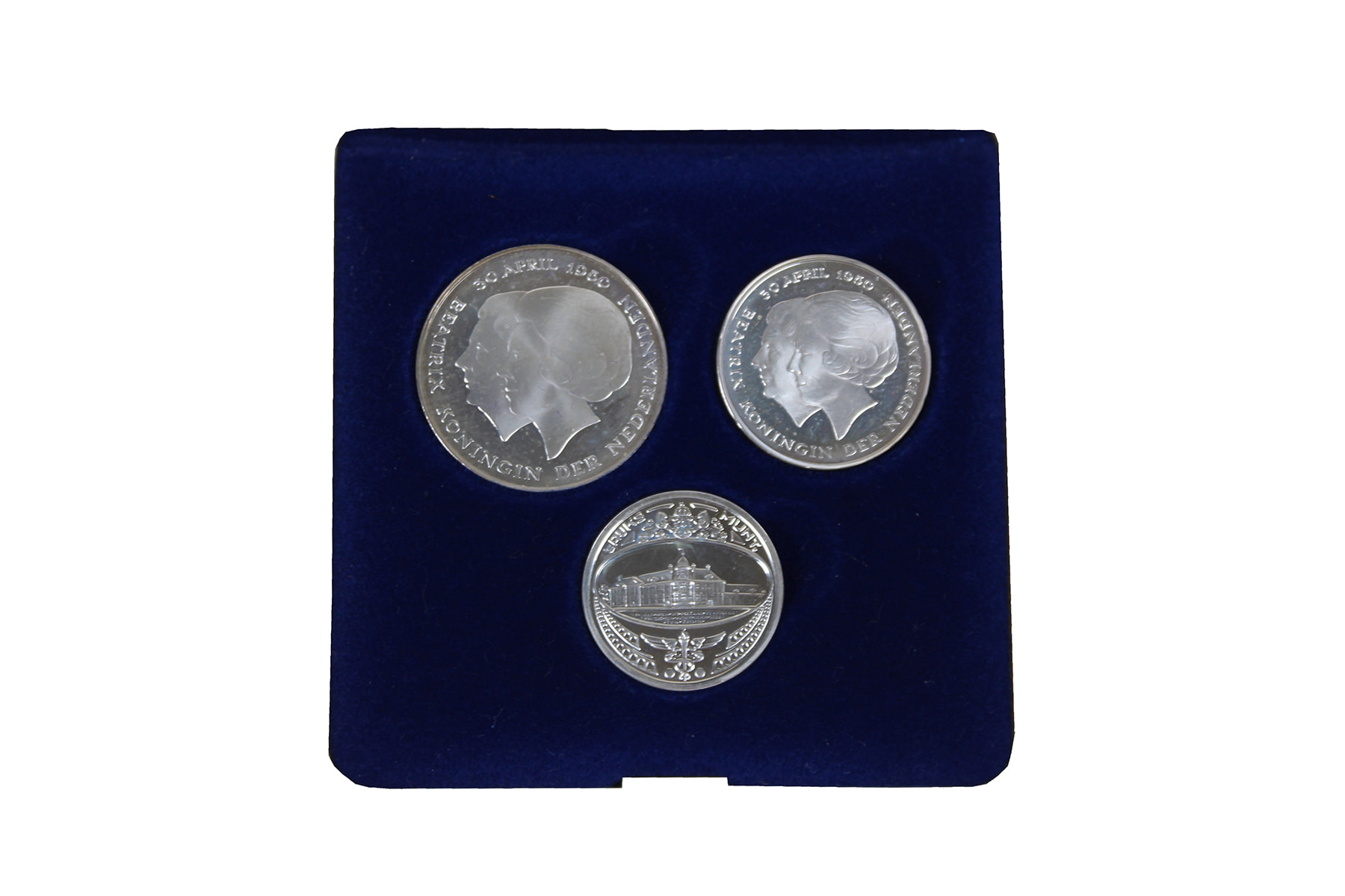 Inhuldigingsset 1980 in zilver. Oplage slechts 157 stuks. Proof in cassette. ⁂