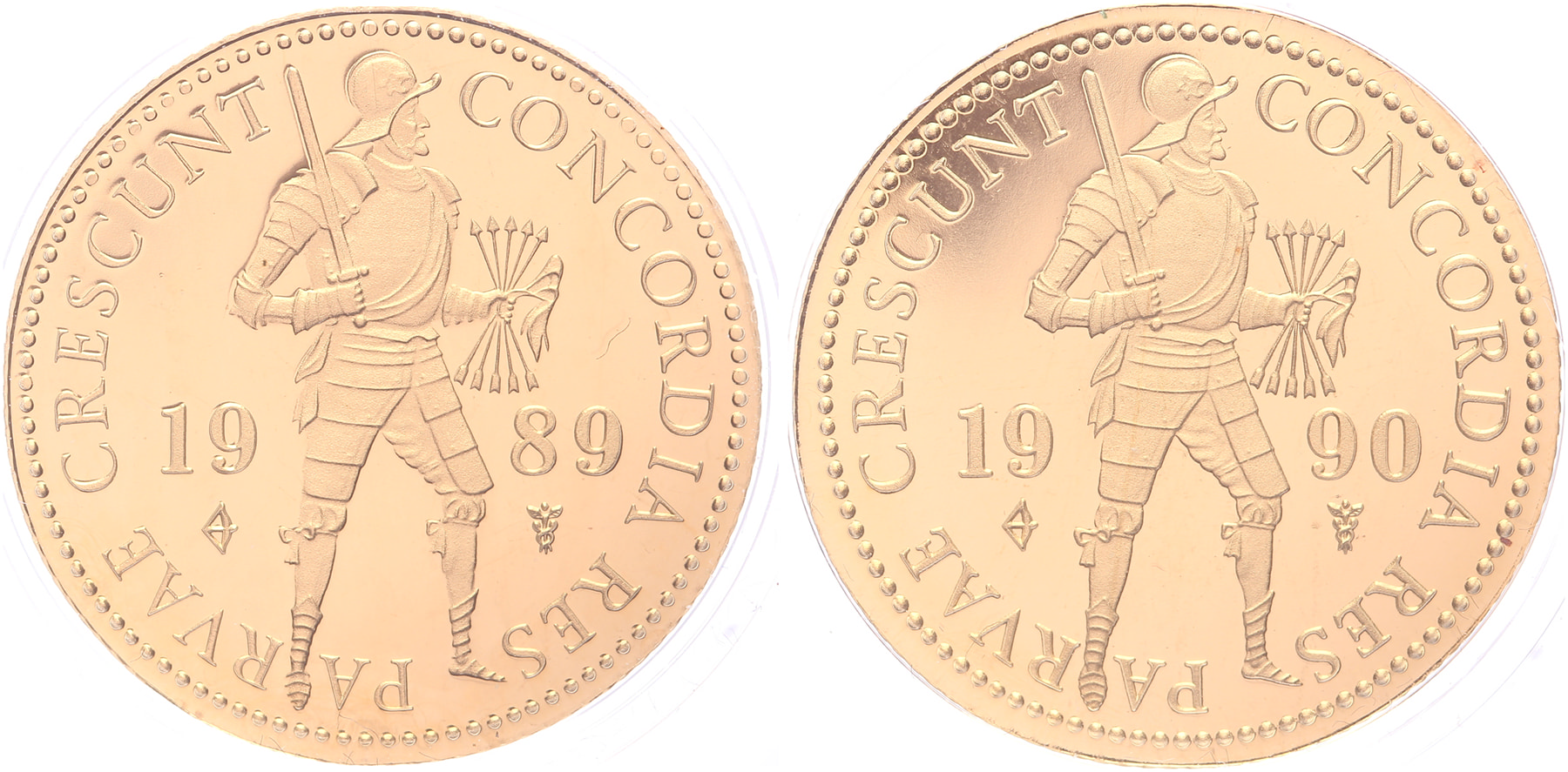 Lot (2) Dukaat 1989 en 1990. LSch. 1131, 1132. Proof in capsule.