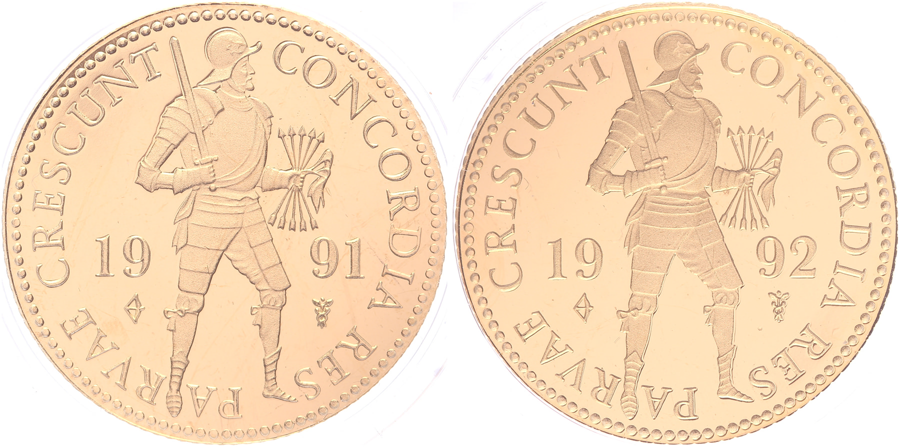 Lot (2) Dukaat 1991 en 1992. LSch. 1133, 1134. Proof in capsule.