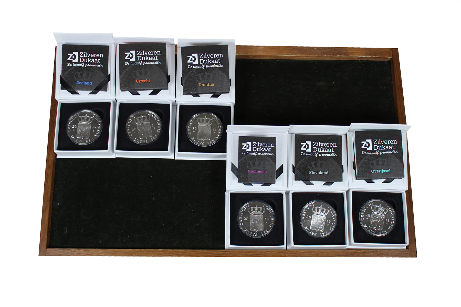 Lot (6) zilveren dukaten 2017 (2), 2018 (3) en 2019 (1). Proof in originele verpakking.