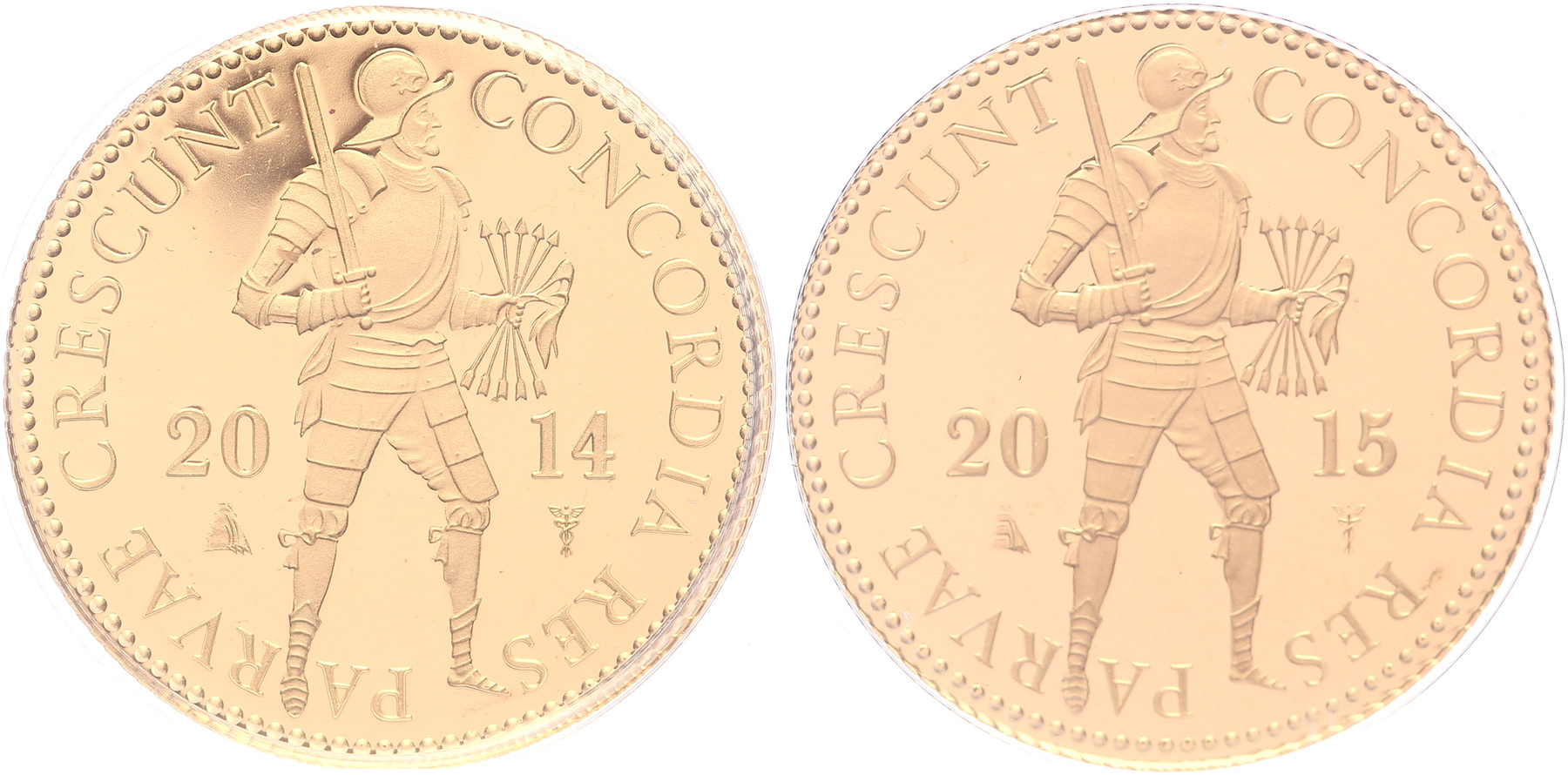 Lot (2) Dukaat 2014 en 2015. Proof in capsule.