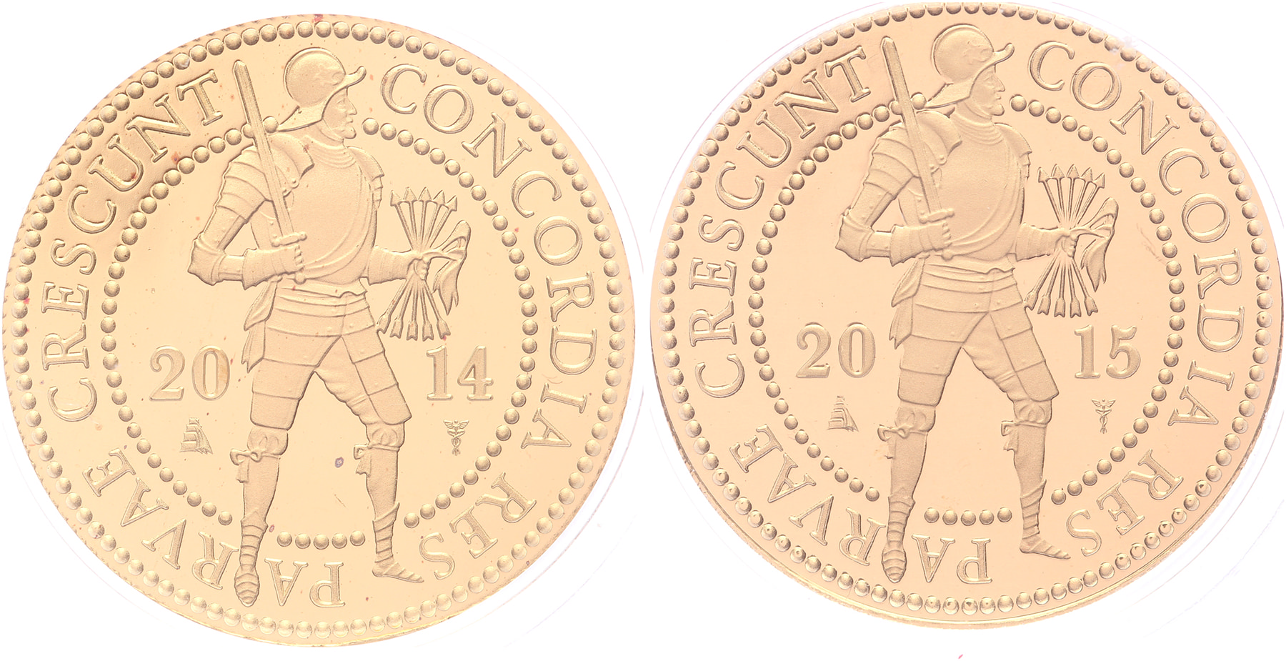 Lot (2) Dubbele dukaat 2014 en 2015. Proof in capsule.