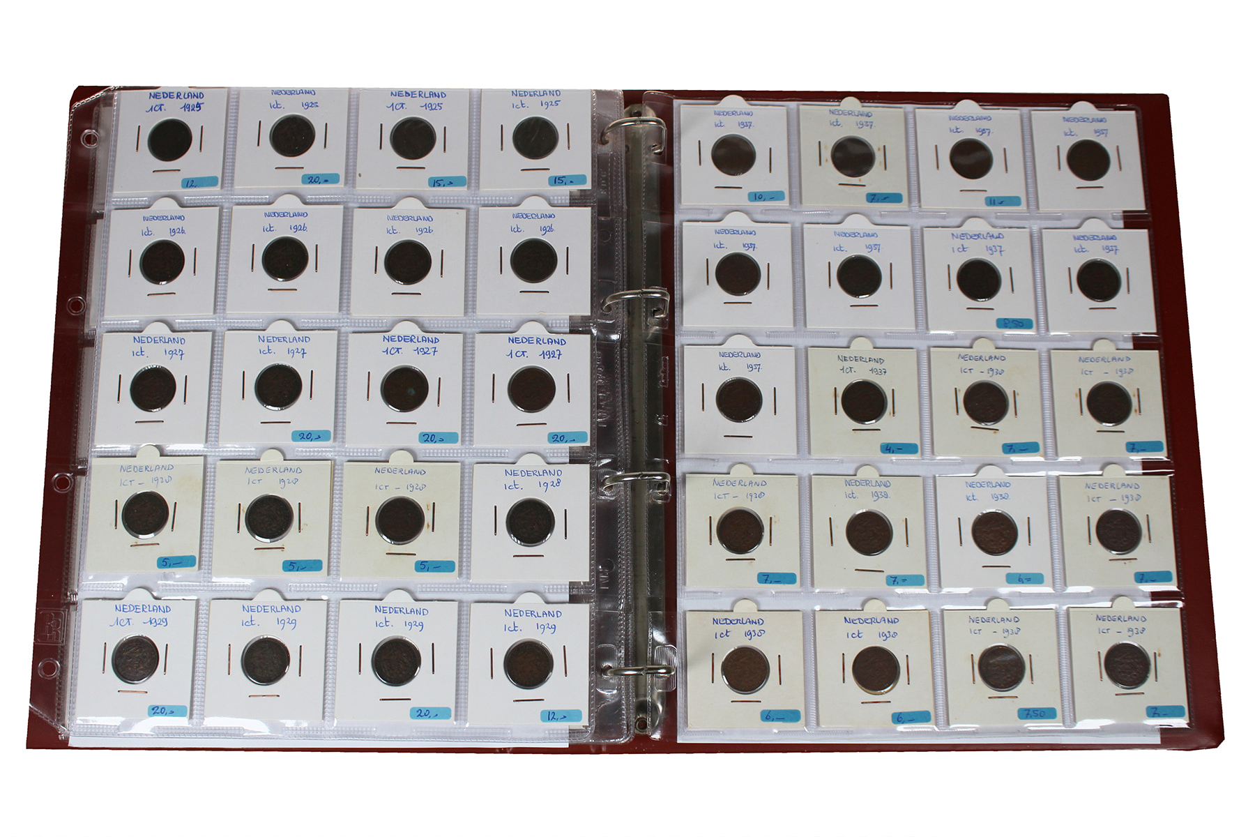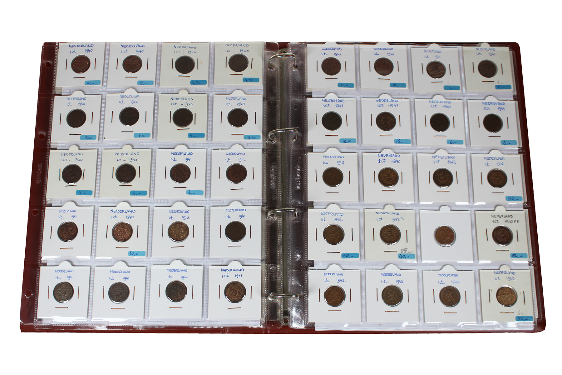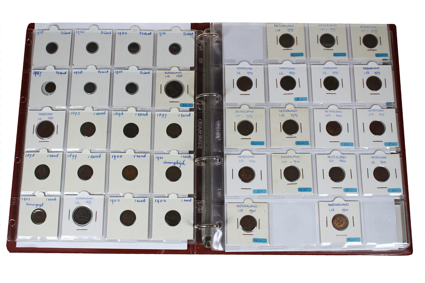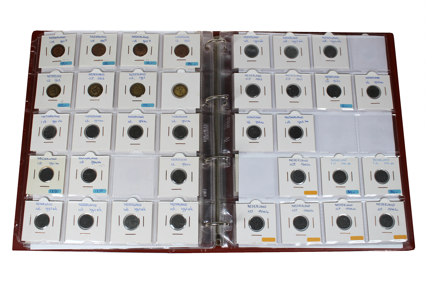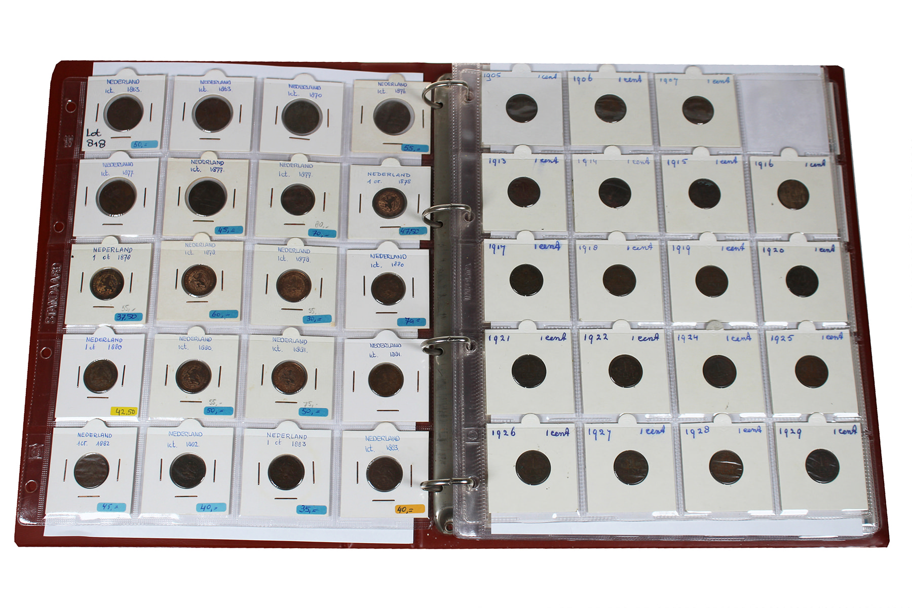 Bruin HB-album met restant handelsvoorraad in mooie kwaliteit. Voornamelijk centen 1863-1944. Goed nazien! ⁂