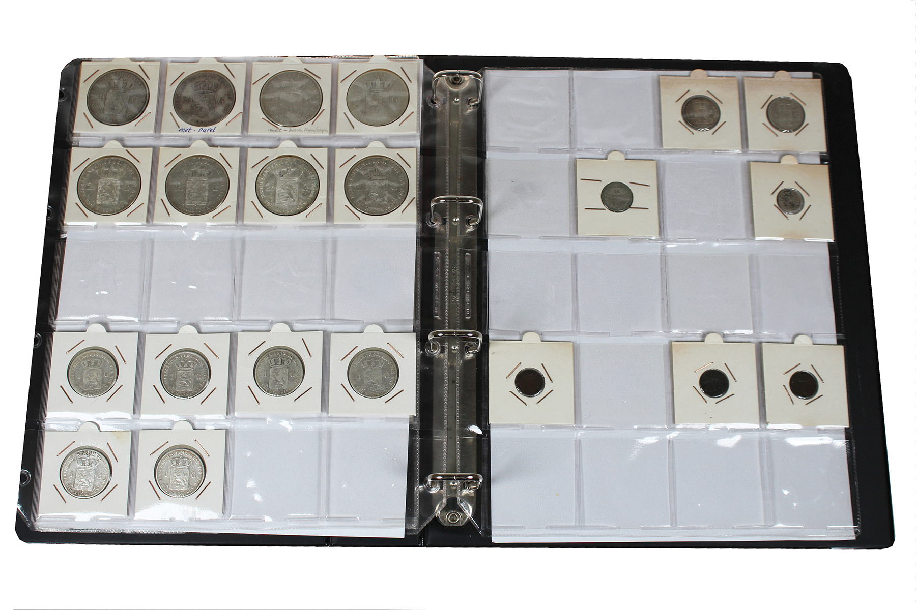 Bordeauxrood album met munten Willem I en II. Paar mooie kwaliteiten.