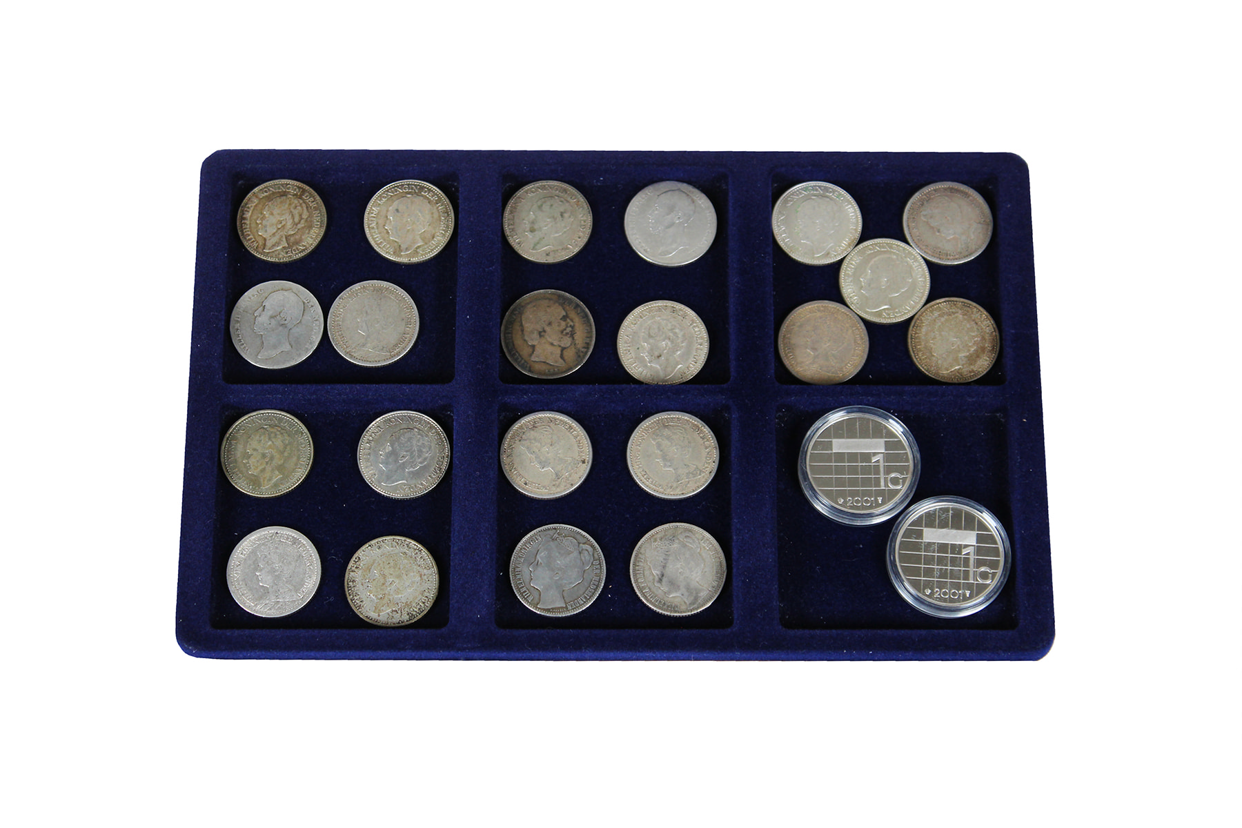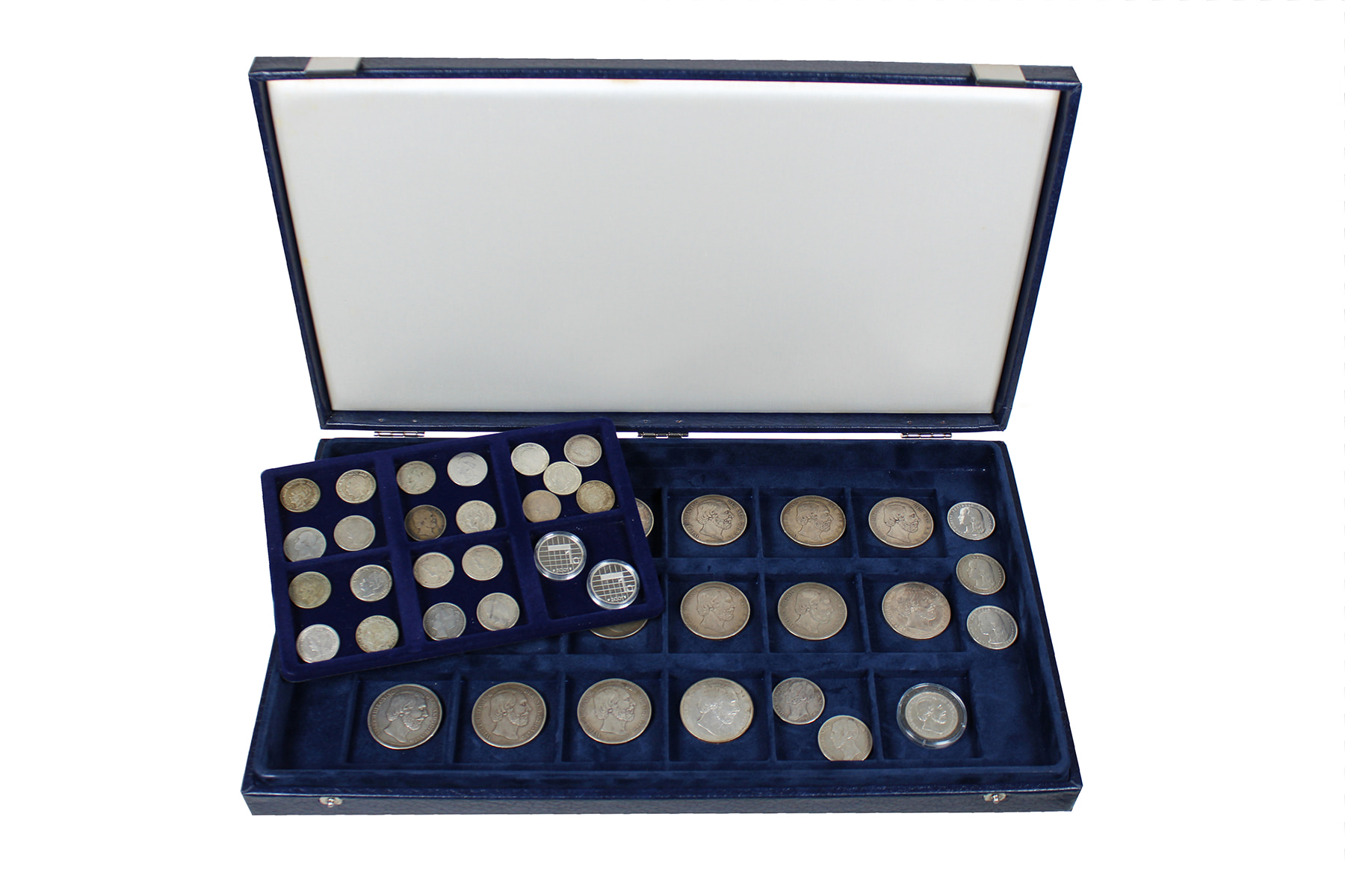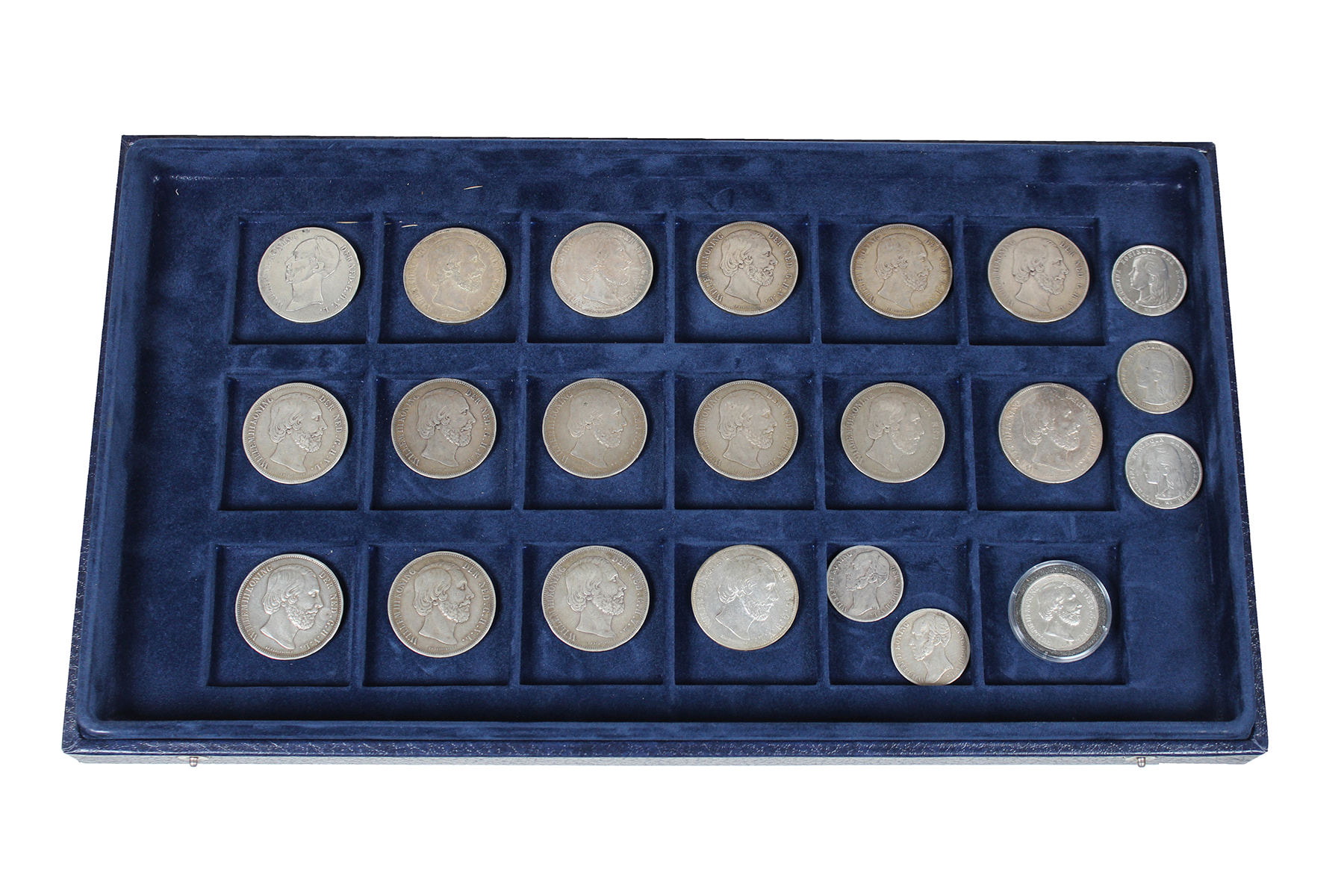 Set met onuitgezochte koninkrijksmunten, bestaande uit 16 rijksdaalders Willem ll en Willem lll, 6 guldens Willem ll, Willem lll en Wilhelmina en ruim 20 x ½ gulden vanaf Willem ll.