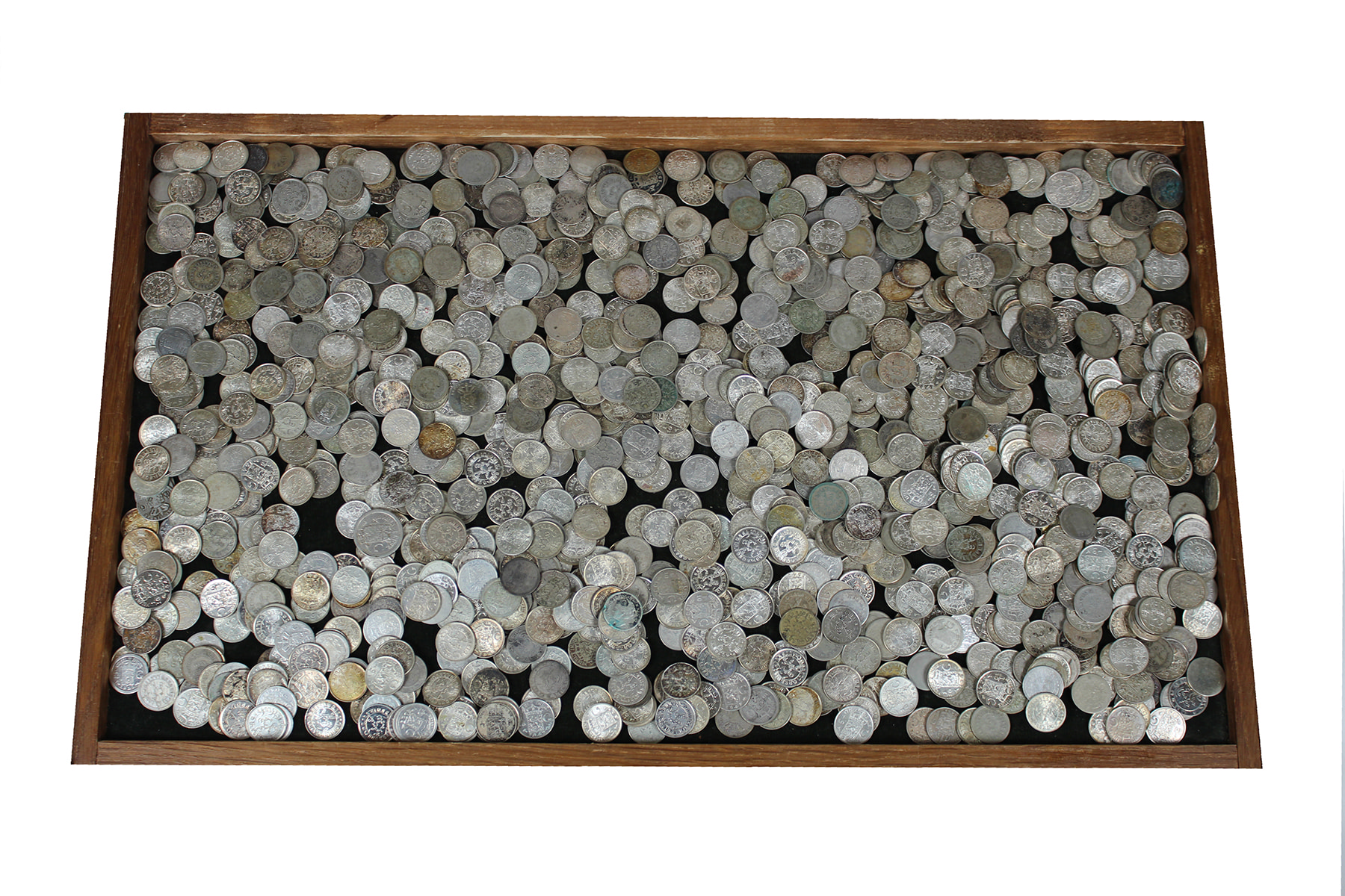 Sigarenkistje met 1,5 kg. (bruto) 1/10 Gulden Nederlands-Indië. Van fraai tot FDC.