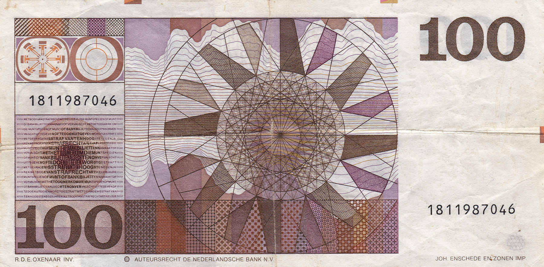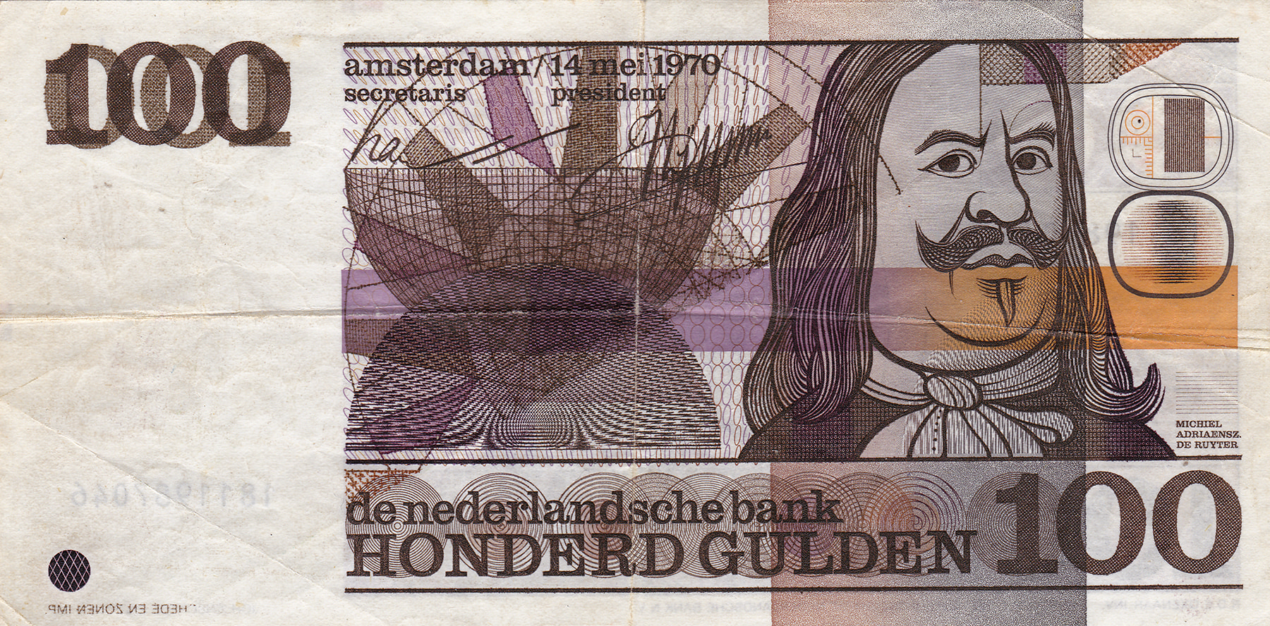 100 Gulden 1970 Michiel de Ruyter. Mev. 122-1; PL 103 [# 1811987046]. Misdruk. Fraai.