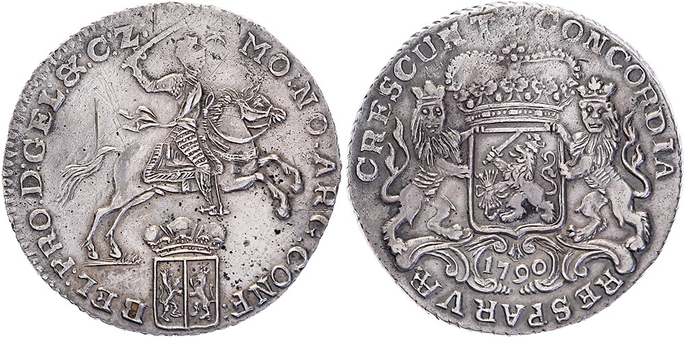 ½ Zilveren rijder of ½ dukaton 1790. Delm. 1045; CNM 2.17.137; HPM 79. Krasjes en putjes voorzijde, overigens zeer fraai.