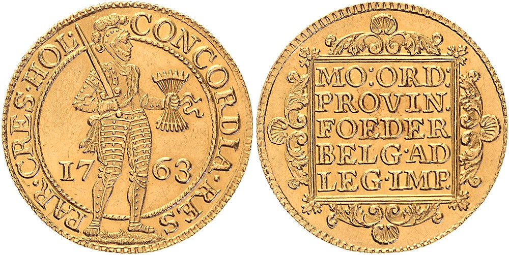 Dubbele dukaat 1763. Delm. 773; CNM 2.28.52; HPM 14 [6,94 gram]. Prachtig / FDC.