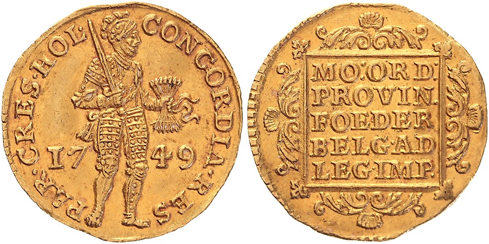 Dukaat 1749. Delm. 775; CNM 2.28.54; HPM 15 [3,50 gram]. Zeer fraai / prachtig.