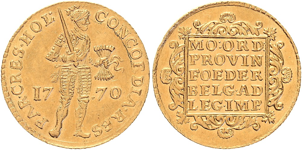 Dukaat 1770. Delm. 775; CNM 2.28.54; HPM 15 [3,51 gram]. Prachtig.