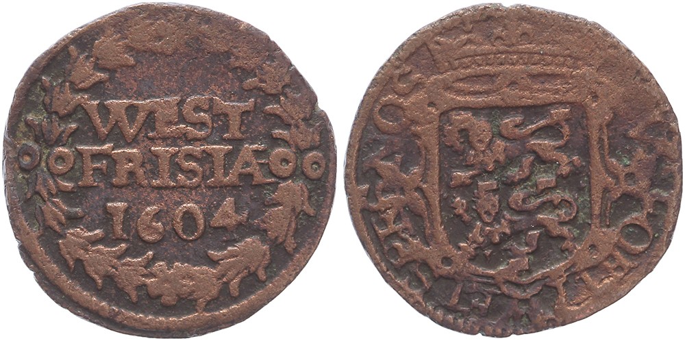 Duit 1604. PW 3001. SPES NOS in omschrift. Zeer fraai.