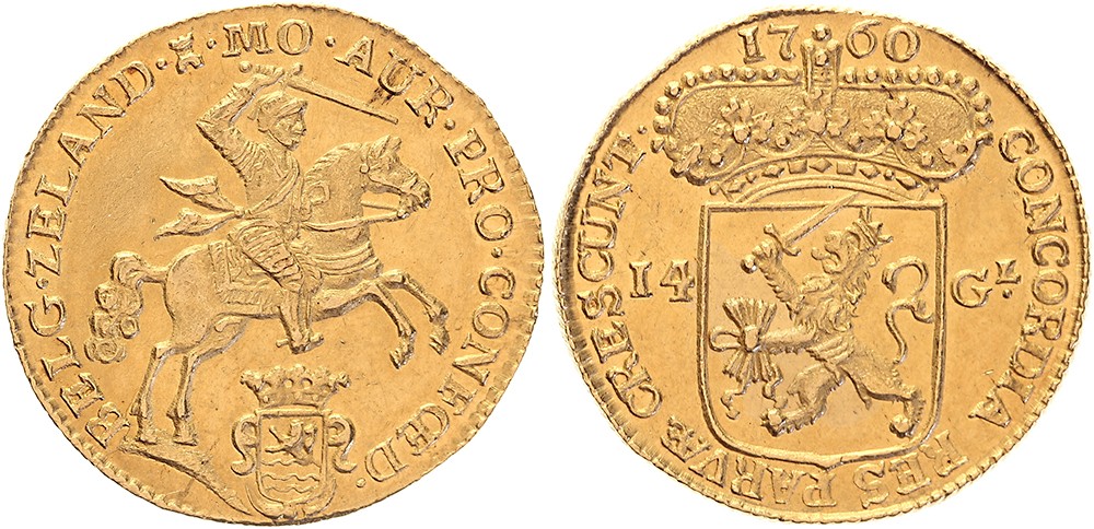 Rijder of 14 gulden 1760. Delm. 889; CNM 2.49.21; HPM 24 [9,94 gram]. Prachtig.