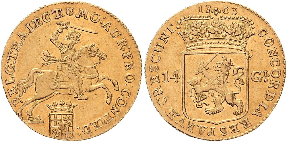 Rijder of 14 gulden 1763. Delm. 970; CNM 2.43.37; HPM 31 [9,94 gram]. Ruim prachtig.