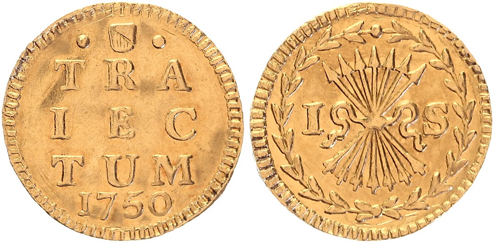 Bezemstuiver 1750. Afslag in goud van 1,70 gram. Delm. 989; CNM 2.43.142; HPM 89.1. Licht opgewreven. Vrijwel prachtig.
