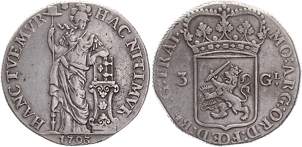 3 Gulden 1793. Delm. 1150; CNM 2.43.117; HPM 71. Vrijwel zeer fraai.