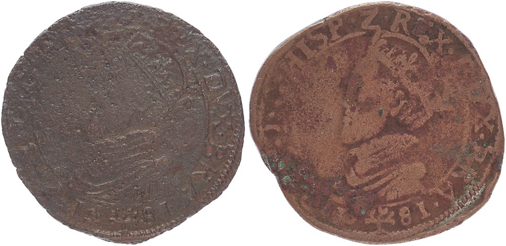 Lot (2) Oord 1581 ‘s-Hertogenbosch. GH 232-4b; PW 9208. Vondstexemplaren. Fraai.