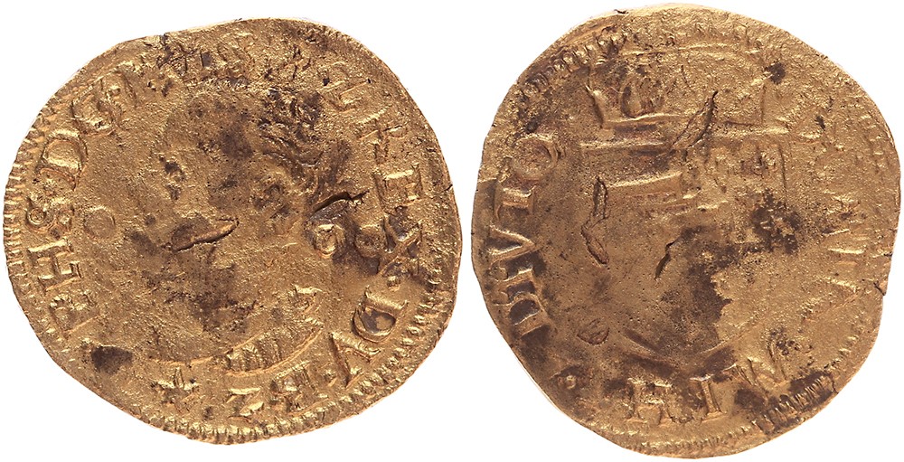 Duit 1582 Maastricht. GH 233-2; Vanhoudt 326. RR. Geelkoper met 3 ringetjes. Fraai.
