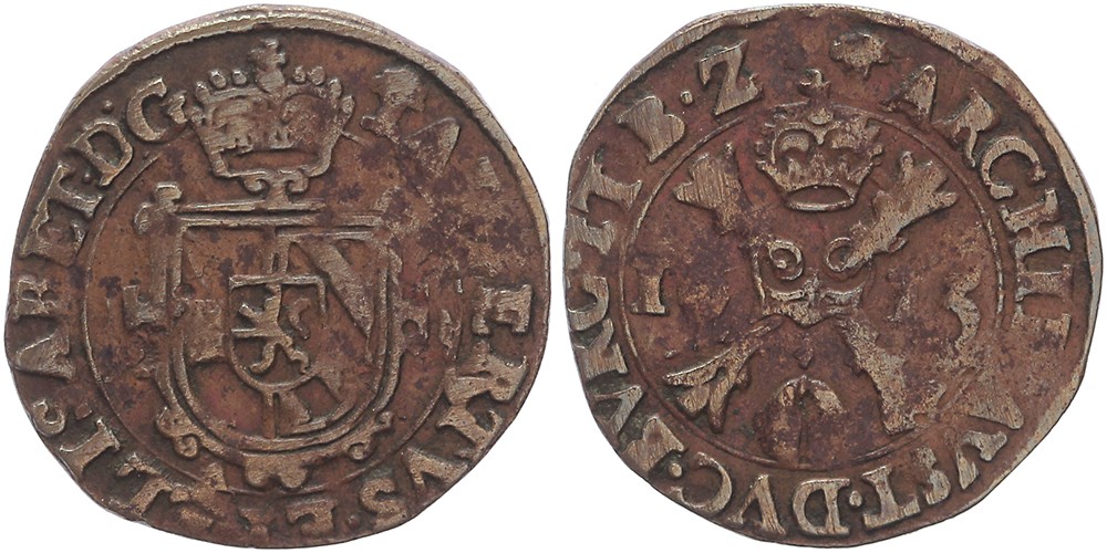 Duit 1615 ‘s-Hertogenbosch. GH 300-4; PW 9210. Zeer fraai.