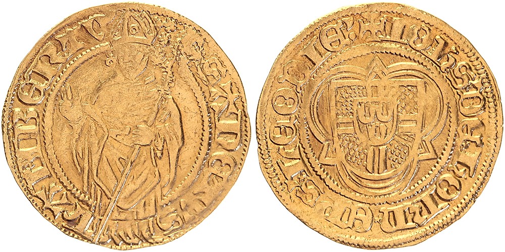 Lambertus- of postulaatgoudgulden z.j. Fr. 300; Mign. 386; Delm. 333 [2,40 gram]. Hoog goudgehalte! Zeer fraai.