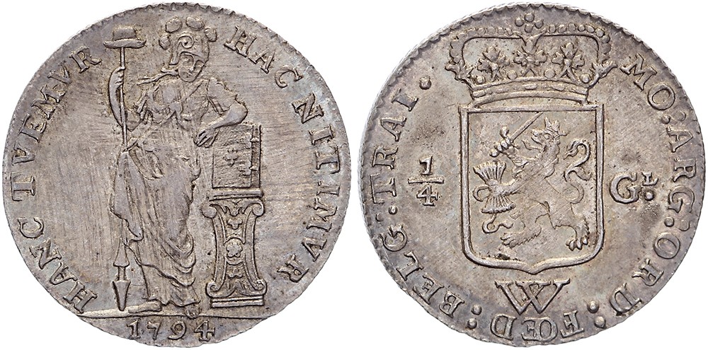 ¼ Gulden 1794. Scholten 1355a. Patina. Prachtig.