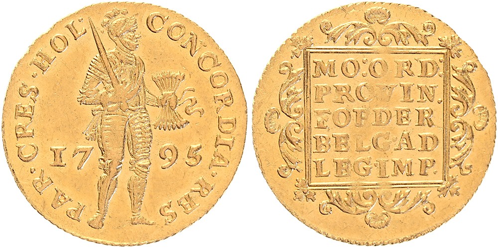 Holland. Gouden dukaat 1795. Sch. 19. Bijna prachtig.