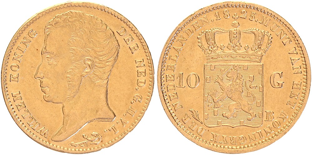 10 Gulden 1825 Brussel mmt. palmtak Sch. 191 Prachtig