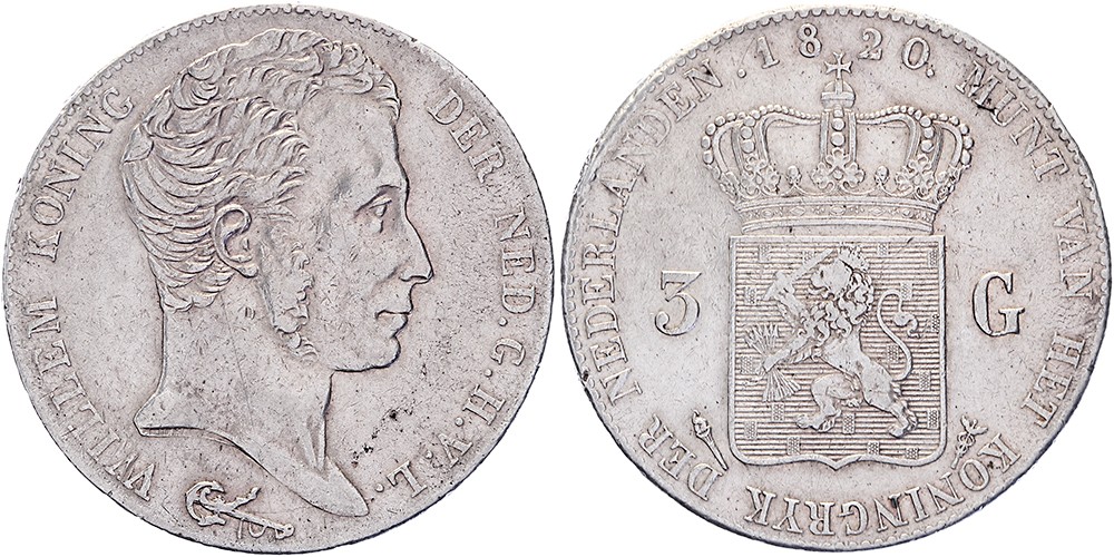 3 Gulden 1820 Utrecht mmt. fakkel Sch. 242 Ruim zeer fraai