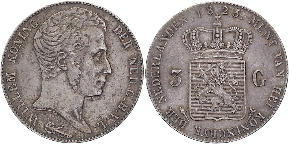 3 Gulden 1823 Utrecht mmt. fakkel Sch. 245 Ruim zeer fraai