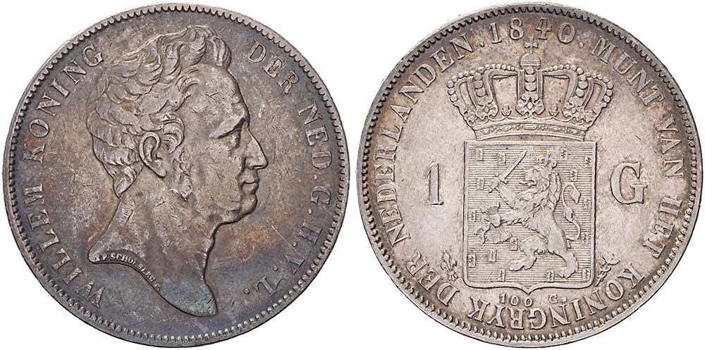 1 Gulden 1840 mmt. lelie Sch. 278. Licht patina Ruim zeer fraai