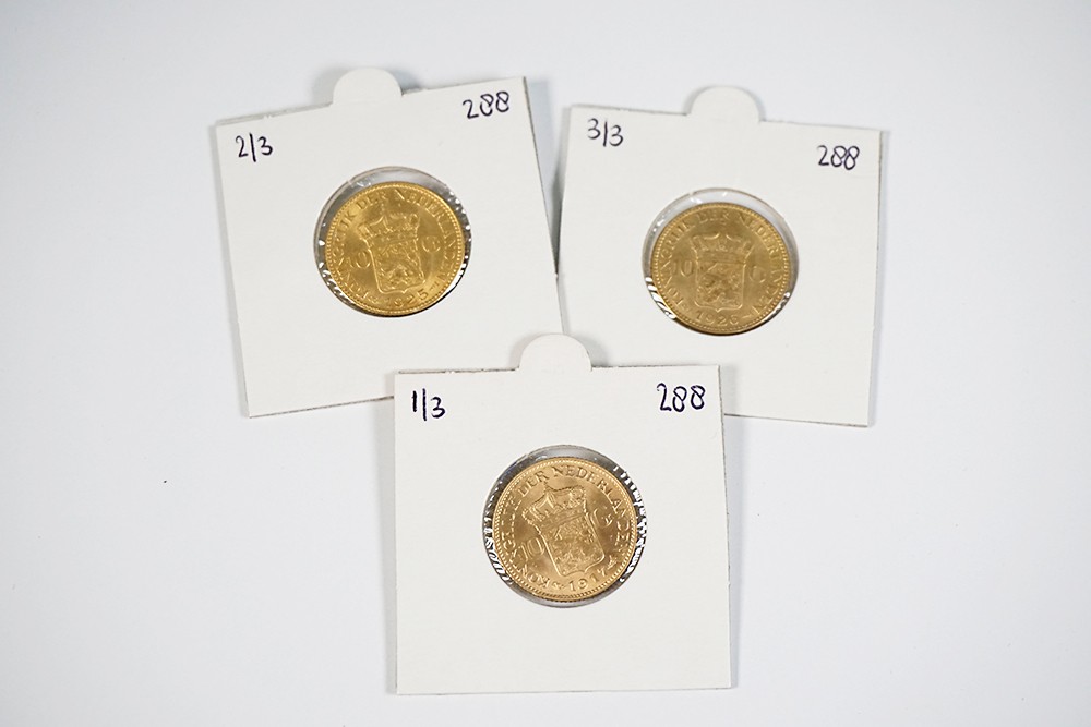 Lot (3) 10 Gulden 1917, 1925 en 1926 Sch. 748 t/m 750 Prachtig