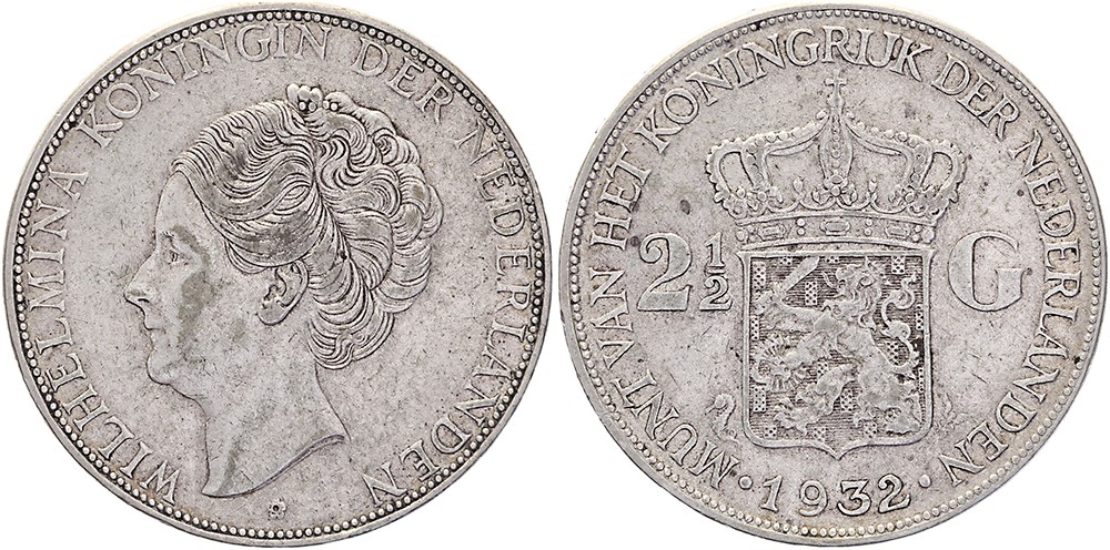 Rijksdaalder 1932 mmt. zeepaardje Sch. 787a. Grof haar Zeer fraai