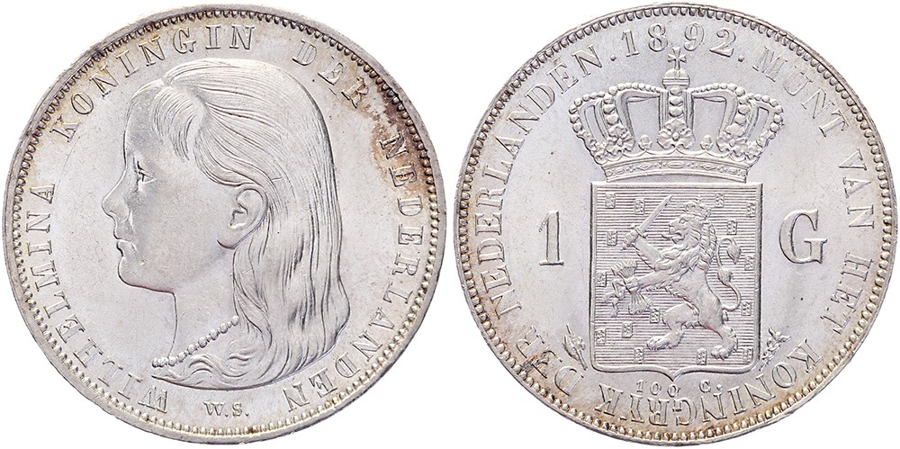 1 Gulden 1892 mmt. hellebaard Sch. 795 Pr / bijna FDC