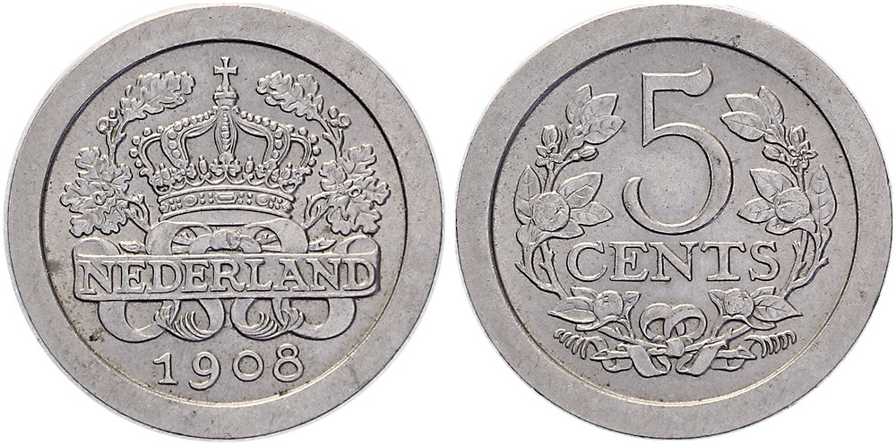 5 Cents 1908 geen mmt. Sch. 913 Vrijwel FDC