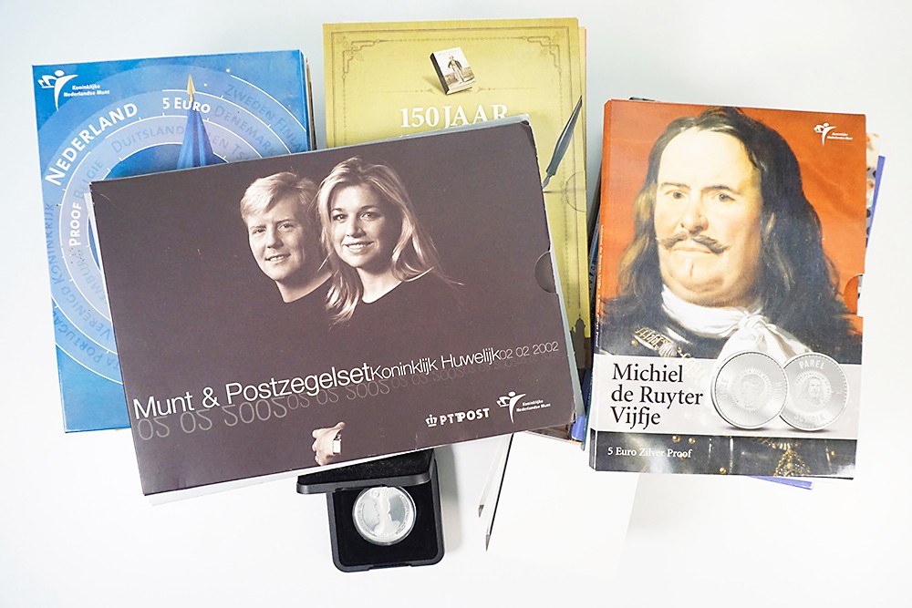 € 5 en € 10 herdenkingsmunten in zilver tussen 2002-2012. Allen in originele verpakking (29). Tevens munt/postzegelset (2). Totaal nominaal: € 205.