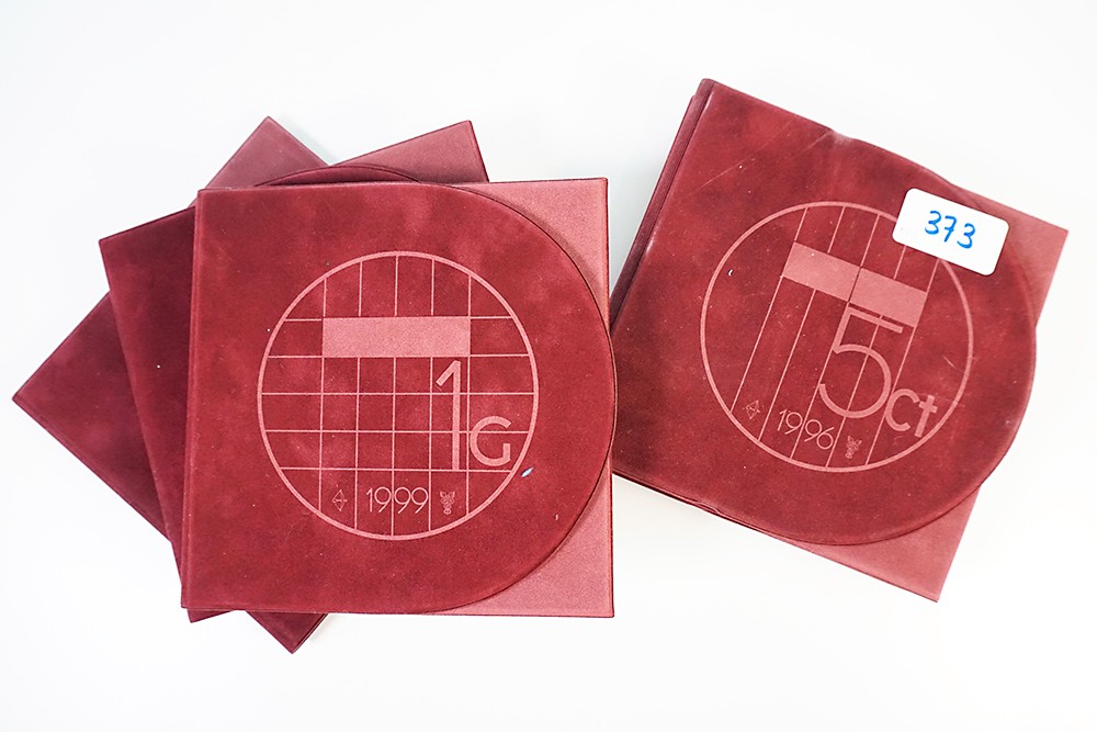Lot (6) Bordeauxrode proofsets 1996-2001. Compleet zonder cassette.
