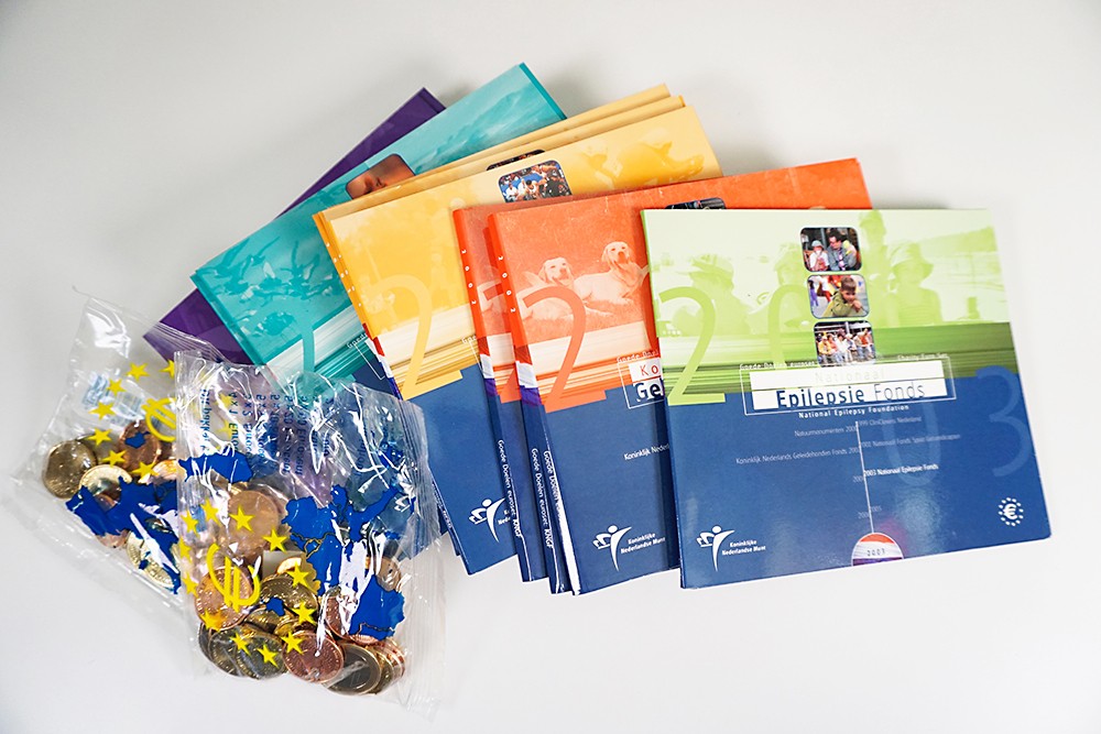 Blik met 13 Goede doelen sets Beatrix en 2 zakjes zgn. euro- starterskit.