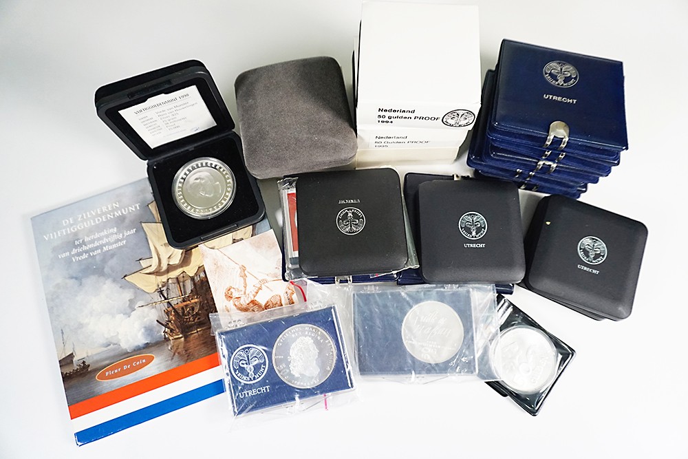 Mooi lot met zilveren 50 guldenstukken van Beatrix 1982-1998. 22 stuks. FDC en proof.