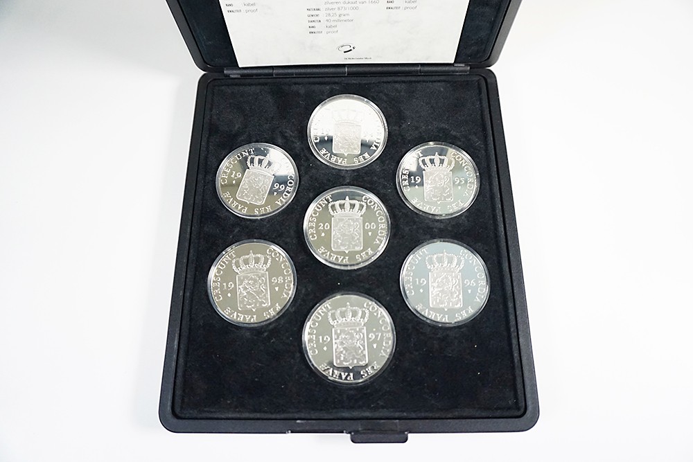 Serie zilveren dukaten 7 stuks, 1994 t/m 2000. Proof in cassette.
