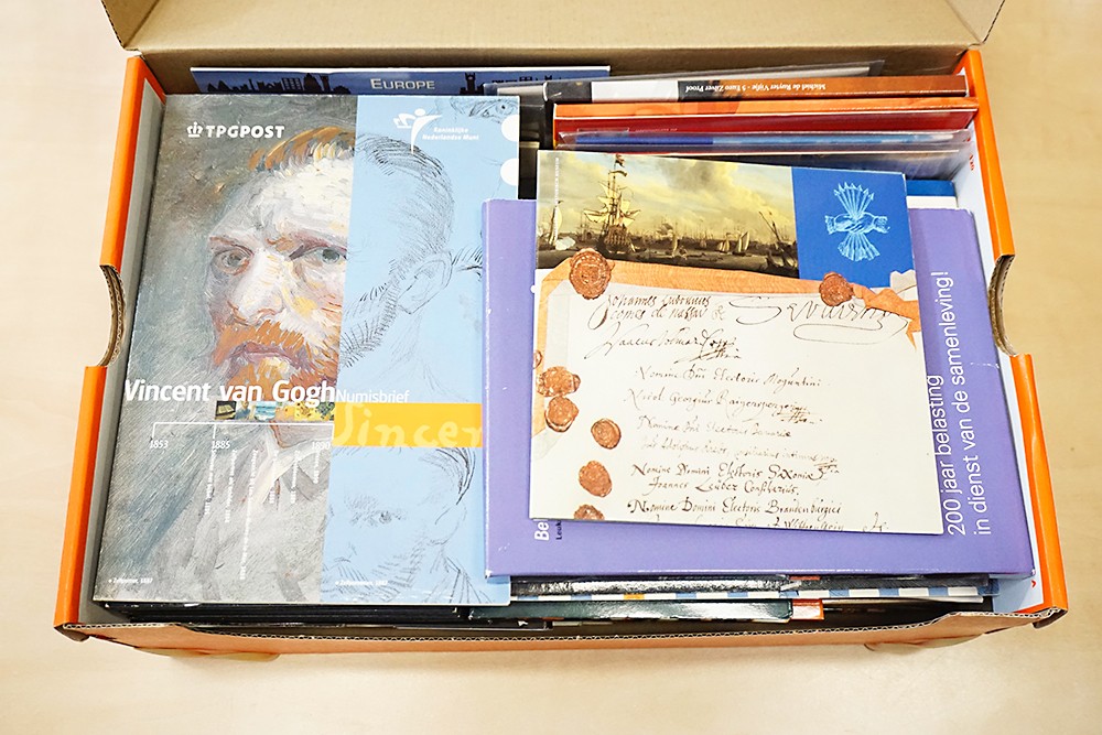 Doos allerlei zoals, zilveren 10 gulden en 50 gulden, 5 euro en 10 euro alsmede FDC-sets uit de gulden tijd en daarna uit het Euro tijdperk. Nagekomen inzending onuitgezocht.