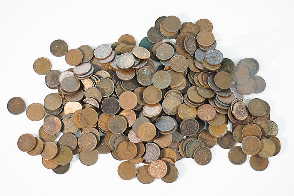 Doosje halve centen (327) van het kleine type (1878-1940), w.o. 2 x 1886 en 3 x 1898.