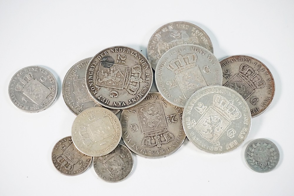 Blikje met diverse zilveren munten koning Willem II (12); vnl. mindere kwaliteiten.